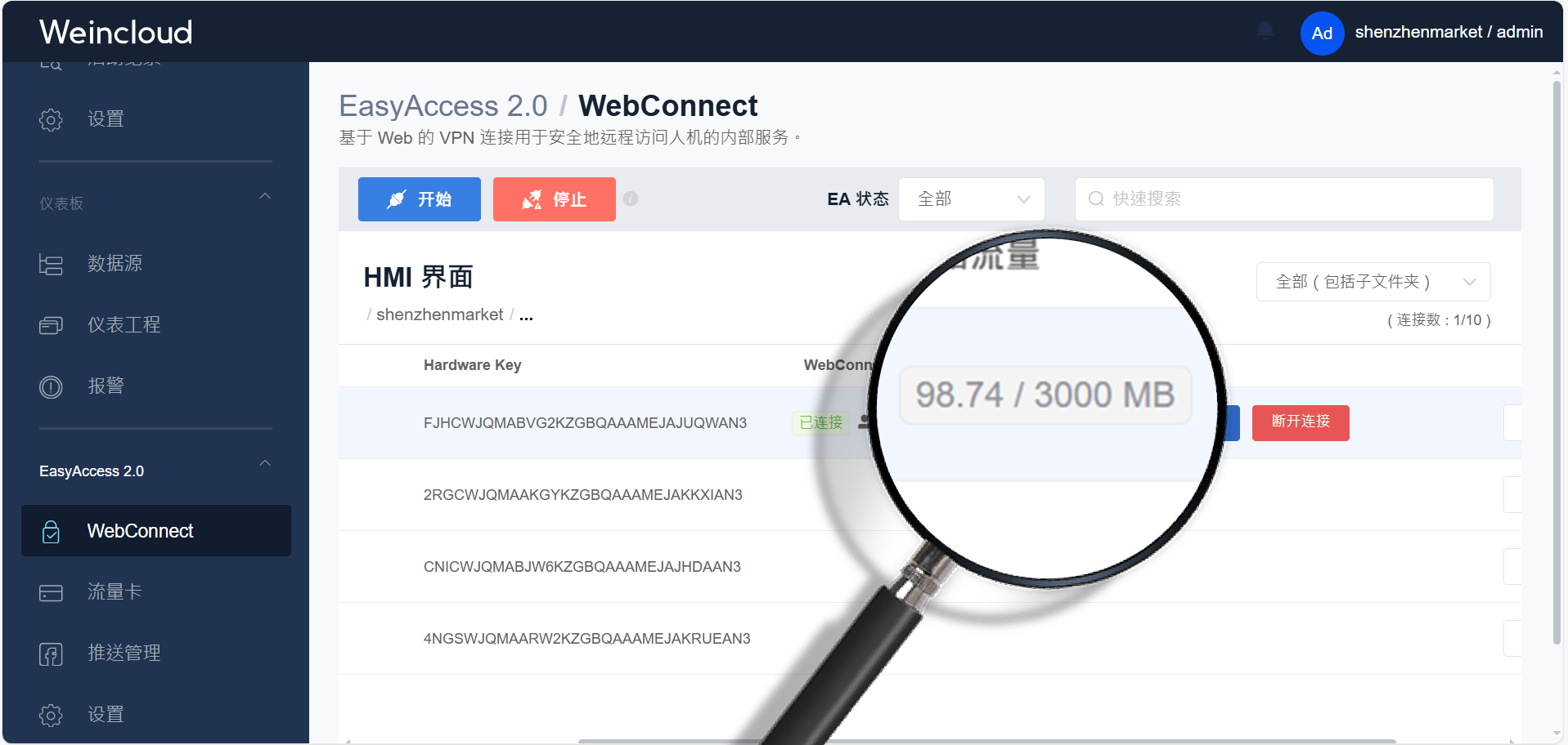 免安裝App,Weincloud推出全新網頁版遠程連接服務WebConnect!通過WebConnect,用戶輕松連接EasyWeb、WebView、VNC,或同一域的網頁服務,隨時查看并修改HMI的各項設置